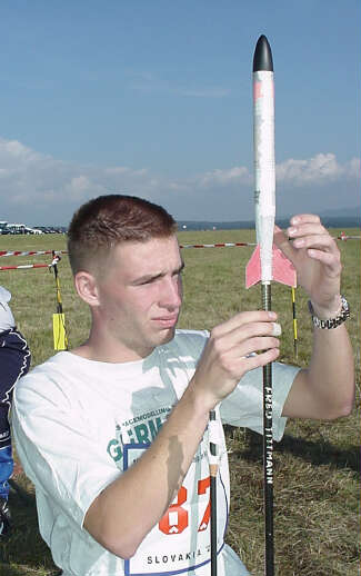 Jonas Büchl bei der Startvorbereitung. 341m mit diesem einstufigen Modell brachten Platz 42. Foto: Sense |