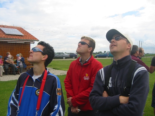 Manuel (links) fliegt, Roman (mitte) ist Zeithelfer, Sascha (rechts) gibt Tips.