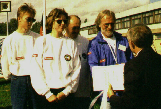 (vlnr. Sascha Steinbeck, Claudia Schuster, Marian Krause und Teammanager Matthias Schneider)