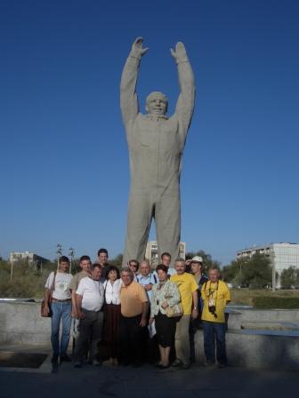 Die Gagarin-Statue wurde von einem Steinmetz bearbeitet, von dem die Baikonurer heute nicht mehr sehr erfreut sind. Sie ist sehr einfach gehalten, oberflächig und sehr kantig. Trotzdem machten wir ein Foto, nach ihm ist ja auch unser Verein benannt, also durften wir das nicht auslassen.