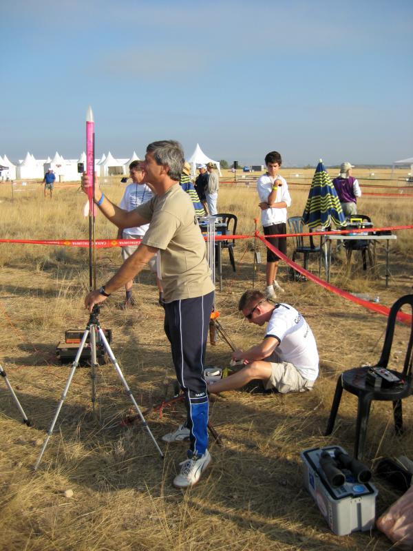 Uwe platziert sein S9 Modell auf die Startrampe und macht sich startbereit.