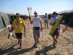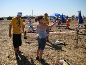 Nach dem gestrigen Training und der Eröffungsfeier, die wie immer bis tief in die Nacht dauerte, war es um Punkt 8 Uhr soweit: Die WM wurde mit dem Wettbewerb für Bremsbanddauerflugmodelle (S6A) eröffnet. Vor zwei Jahren im spanischen Lleida schaffte es Jonas Büchl, sich mit 3 Maximalzeiten gegen die gesamte Konkurrenz durchzusetzen und tritt dieses Jahr als Titelverteidiger außerhalb der Teamwertung an. Das Team selbst besteht aus Michael Helmert, Henning Lohse und Stehphanie Uhlig. |